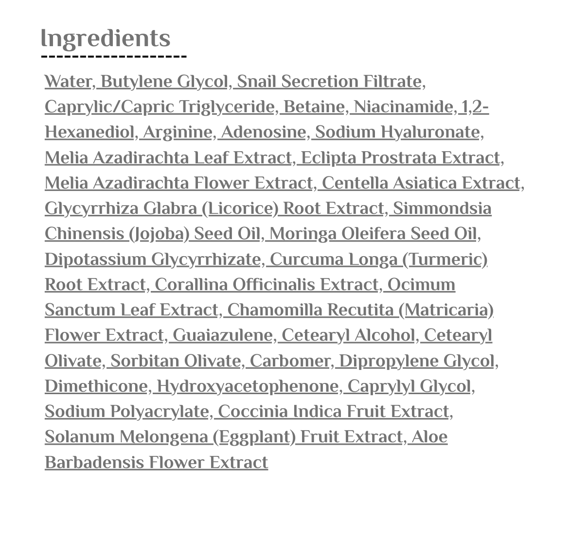 مستخلصات نباتية مهدئة: سينتلا أسياتيكا، عرق السوس، البابونج، المورينغا، الألوفيرا