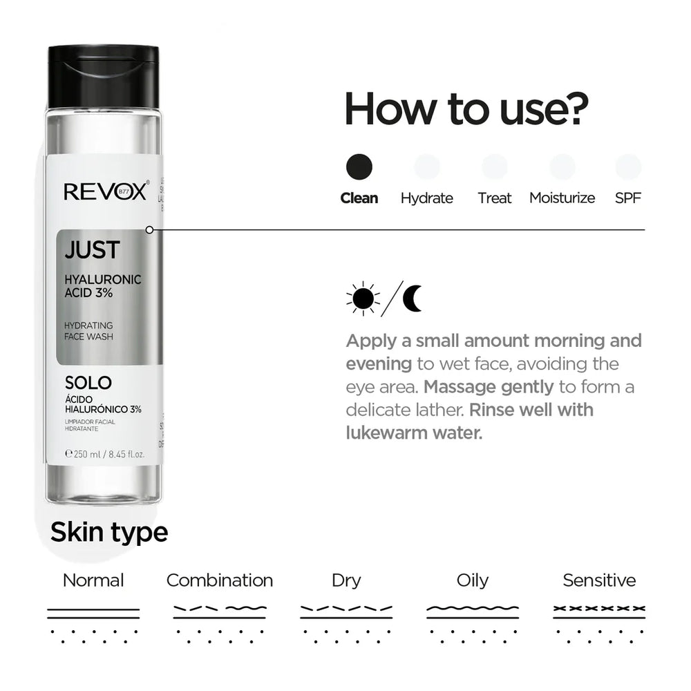 غسول الوجه يحتوي على 3% من حمض الهيالورونيك، والذي يعمل على ترطيب البشرة بعمق. يمتاز بتركيبته اللطيفة التي تنظف البشرة بلطف وتمنحها ترطيباً فورياً، مما يجعلها تبدو ناعمة ومرطبة طوال اليوم. مثالي للبشرة الجافة والحساسة.