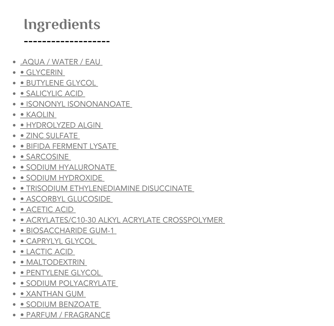 حمض الساليسيليك 2%, هيالورونيك اسيد, البروبيوتيك, زنك