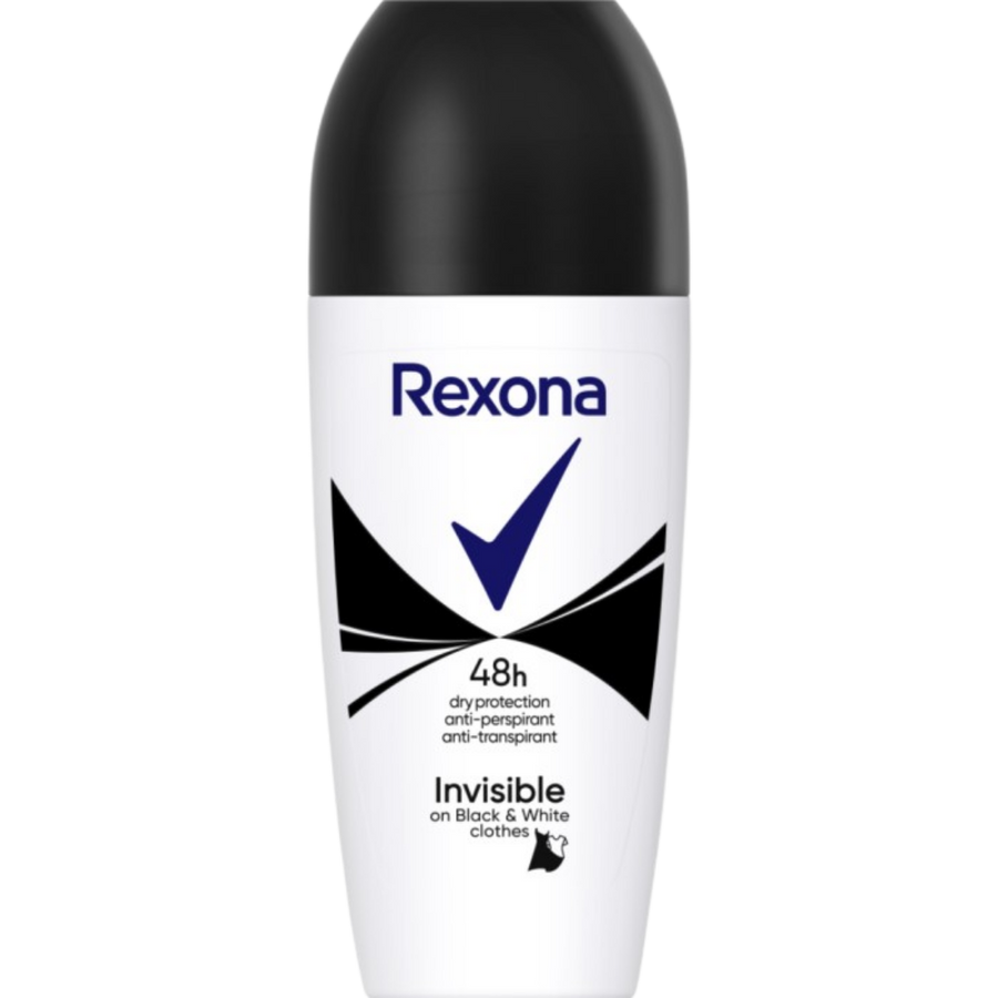 Rexona Deo Roller Invisible Black+ White Clothes 50ml | ريكسونا مزيل تعرق رول للملابس البيضاء والسوداء - 50 مل