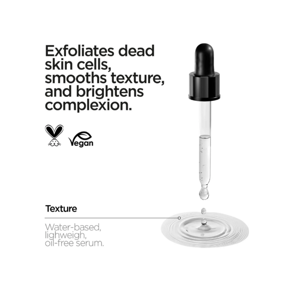 يقوم حمض الجليكوليك بتفكيك الروابط بين خلايا الجلد الميتة، مما يسهّل تقشيرها بلطف ويسرّع من عملية تجديد خلايا البشرة. ومع الاستخدام المنتظم، يساعد في إظهار طبقات جديدة من الجلد تبدو أكثر نضارة ونعومة، ويمنحك مظهرًا أكثر شبابًا وإشراقًا.