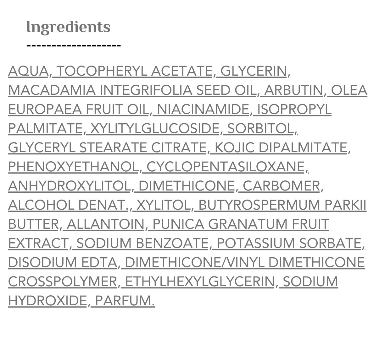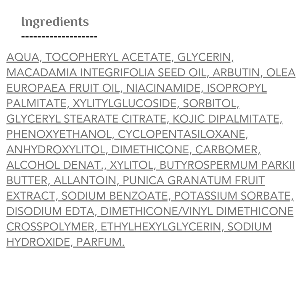 تم تطوير هذا الكريم خصيصًا ليعمل على تفتيح البشرة وتقليل البقع الداكنة من خلال مكونات فعالة تثبط إنتاج الميلانين، تمتص أشعة UV-B، وتمنع فرط التصبغ.
